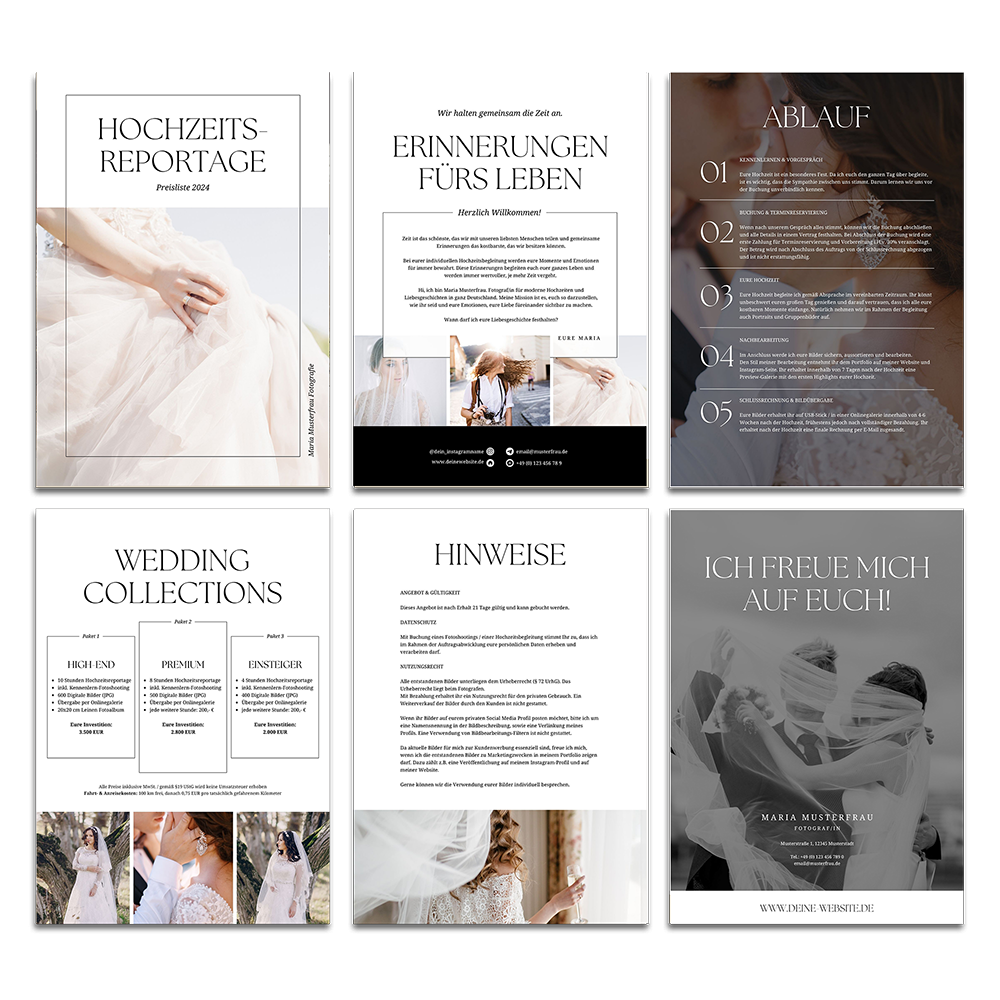 Mit dieser Vorlage gestaltest du deine moderne und professionelle Preisliste als Fotograf/in oder Videograf/in.